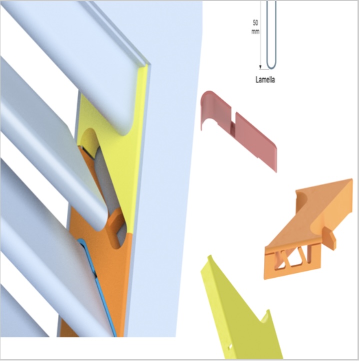 Lamella elegante con montaggio a scatto e sistema No Lux.