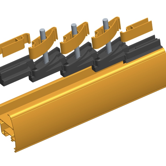 Sistema con spalletta mobile e Leva ZIP per montaggio veloce.