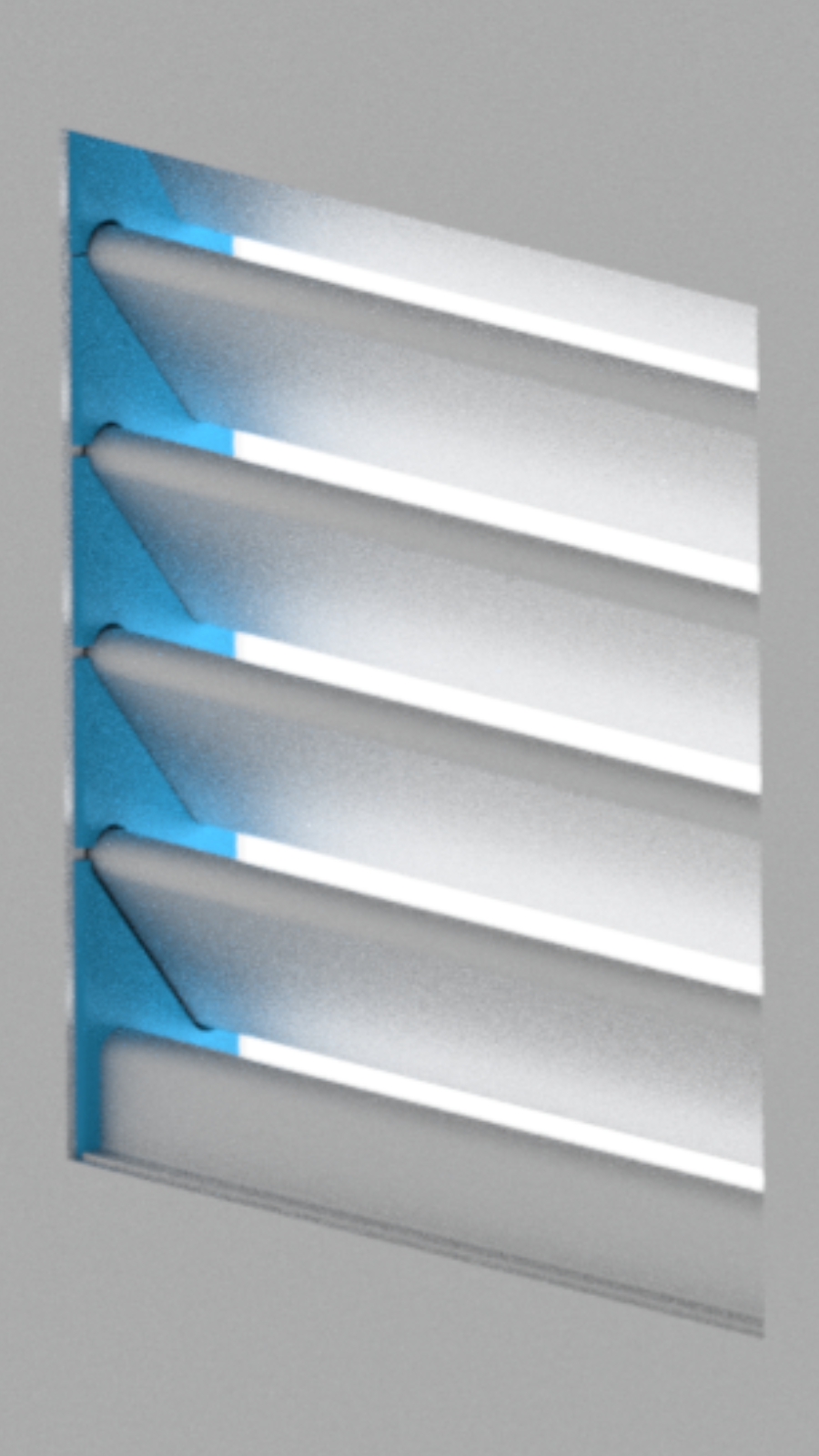 Persiana per aperture sagomate con lamelle totalmente orientabili.